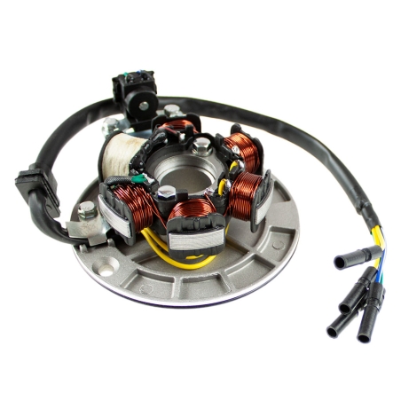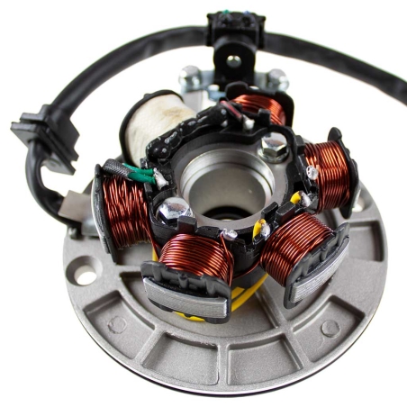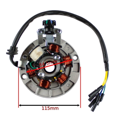 Stator kompletny z podstawą i czujnikiem położenia wału, do motocykli i motorowerów typu Pitbike z silnikami YX140, czterosuwowymi.