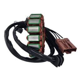 Stator kompletny z impulsatorem, do motocykli i motorowerów z silnikami 154FMI.Elementy charakterystyczne: 6 cewek, 1 cewka główna, 5 przewodów na osobnych konektorach rurkowych, impulsator.Wyamiry: średnica zewnętrzna: 83mm ; średnica wewnętrzna 29mm