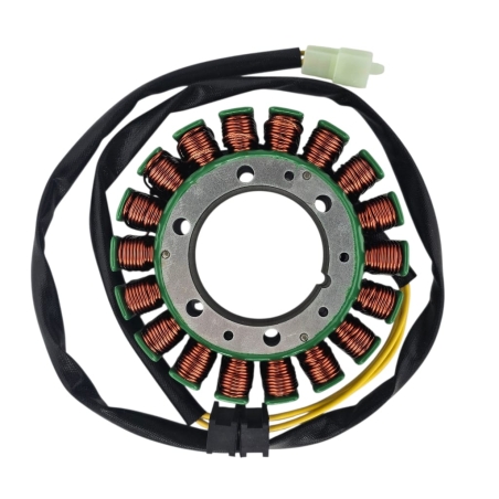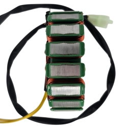 Stator kompletny z impulsatorem, do motocykli i motorowerów z silnikami 139FMB.Elementy charakterystyczne: 1 x cewka główna, 1 x cewka dodatkowa, 5 przewodów na osobnych konektorach rurkowych.