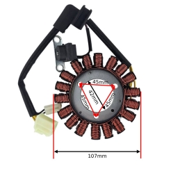 Stator do silników Piaggio 4T 400 500, 18 cewek, impulsator.Wymiary: średnica zewnętrzna: 95,5mm ; 18 cewekNr OEM: 58108R