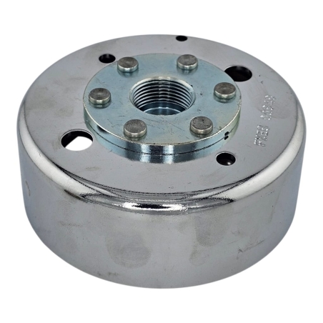 Stator kompletny, z impulstaorem, do silników GY6 125, montowanych w maxiskuterach, lub pojazdach typu ATV.Wymiary: 11 cewek, 1 cewka główna, 6 pinów ( kostka 4 piny i 2 piny osobno ), średnica zewnętrzna: 88mm , rozstaw otworów mocujących 41mm.