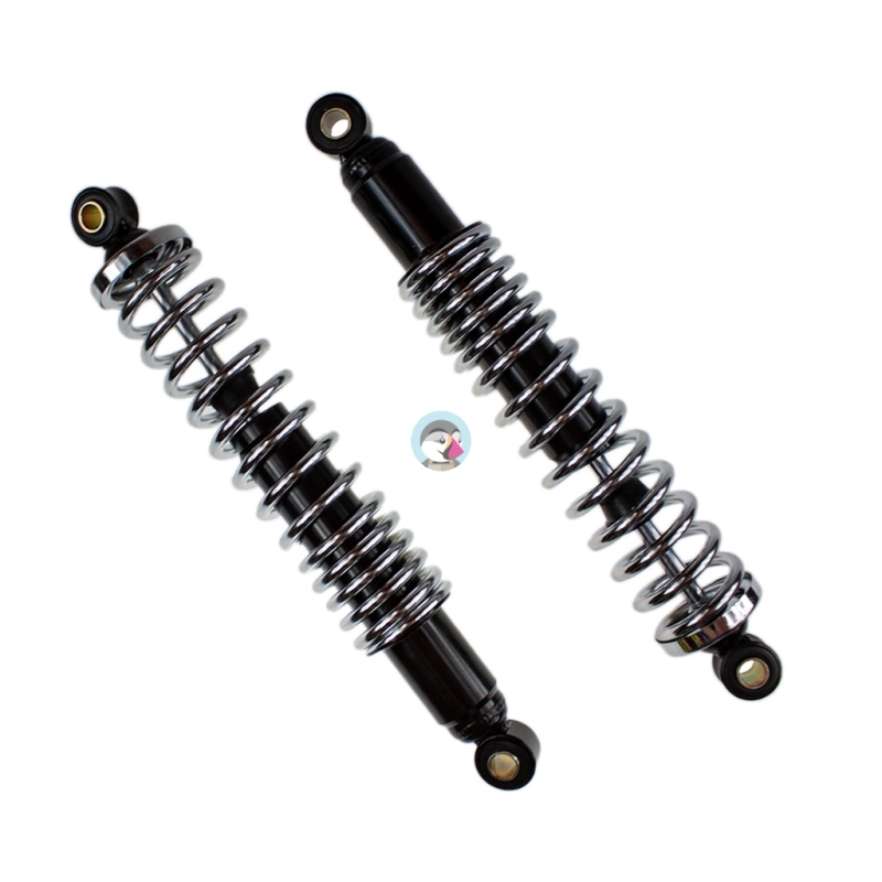 Komplet dwóch mortyzatorów, do motorowerów Romet Komar, Ogar, Kadet, Motorynka, Jawa50, Jawa20, oraz pojazdów ATV. Wymiary podstawowe: długość całkowita 325mm ; średnica mocowania górnego: 8mm ; średnica mocowania dolnego 8mm