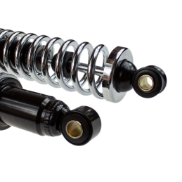 Komplet dwóch sztuk amortyzatorów chromowanych do motorowerów Jawka Jawa 50 Mustang, Skuter. Dugość amortyzatorów: 325mm . Średnice otworów montażowych 8mm. Produkt najwyższej jakości. Niewzykle starannie wykonany.