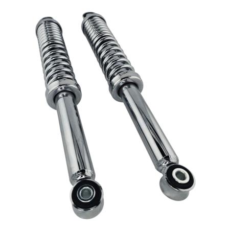Zestaw zawiera dwa amortyzatory tylne chromowane, na podkładzie miedzianym.