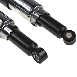 Komplet dwóch amortyzatorów, do motorowerów Romet Ogar200, Romet Ogar205, Romet Pony Motorynka M2 M3 301. Amortyzatory wykonane na wzór oryginalnych amortyzatorów. Sprężyna chromowana.