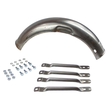 Błotnik przedni do lag 25mm, metalowy, surowy, gotowy do polakierowania, do motorowerów Romet Pony, Motorynka. W zestawie ze śrubami mocującymi oraz uchwytami do lag.