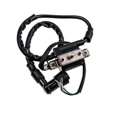 Cewka zapłonowa z przewodem i fajką plastikową. Mocowana na jedną śrubę do ramy pojazdu. Cewka ma wejście na dwa przewody. Pasuje między innymi do skuterów czterosuwowych produkowanych w Azji.