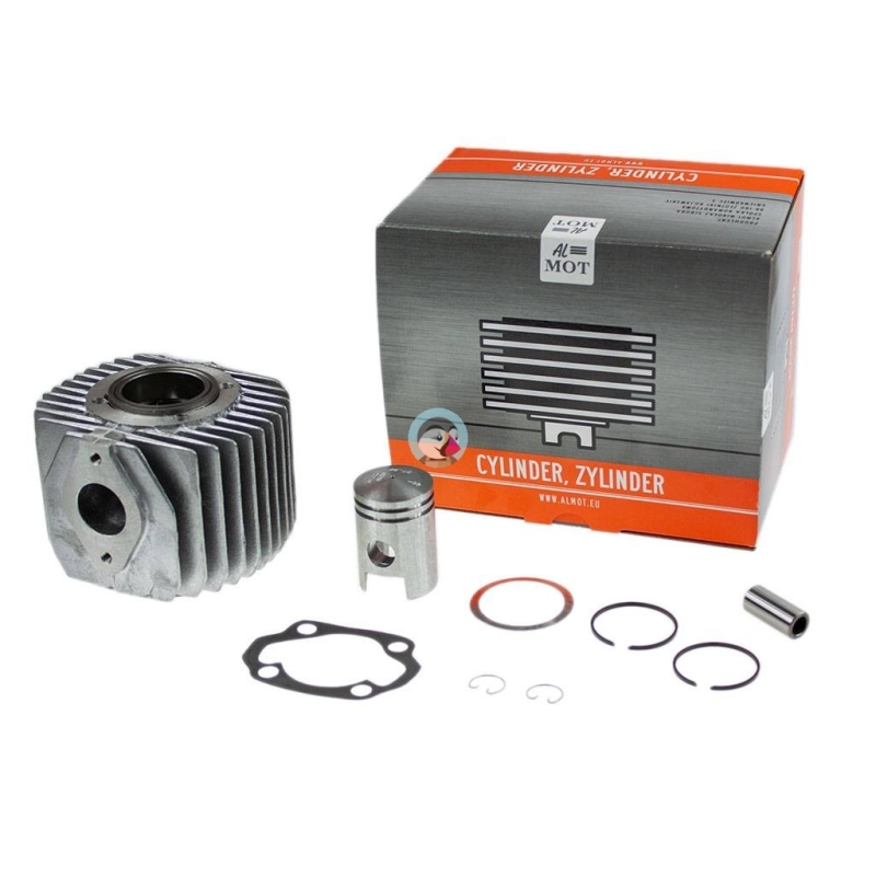 Kompletny cylinder z tłokiem AK20 dwupierścieniowym, pierścieniami, sworzniem, zabezpieczeniami i uszczelkami, do motorowerów Jawa50 Mustang, Jawa50 Pancerka, Romet Ogar200 Pojemność 60cm3 Produkt najwyższej jakości w całości produkcji ALMOT.