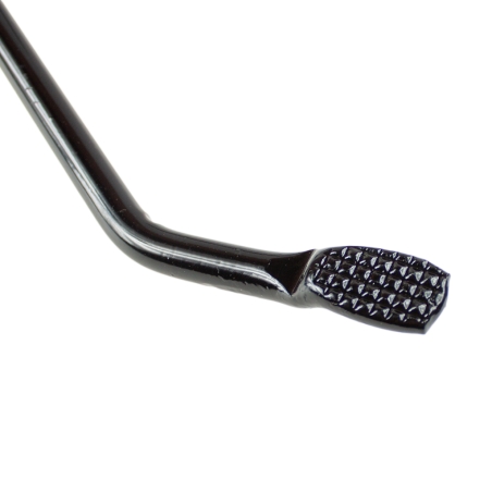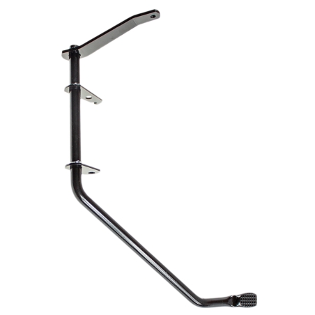 Dźwignia hamulca nożnego - pedał hamulca, czarna metalowa do Simson S51 Enduro z mocowaniami i miejscem do zamocowania pręta hamulca.