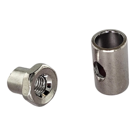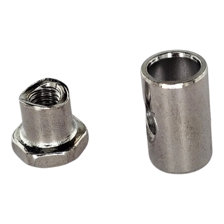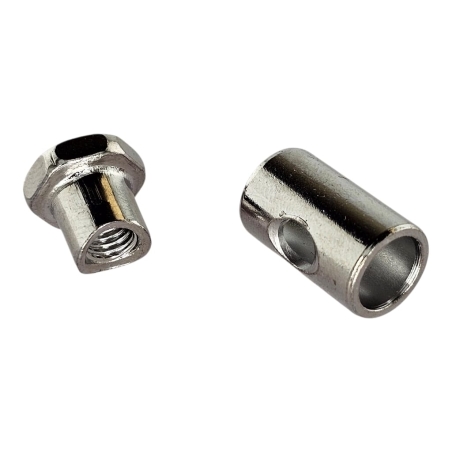 Chromowana nakrętka pręta hamulca przedniego i tylnego w komplecie z chromowaną tuleją do dźwigni rozpieracza hamulca, do motocykli WSK125, WSK175. Wysokiej jakości produkt wykoanany według oryginału.