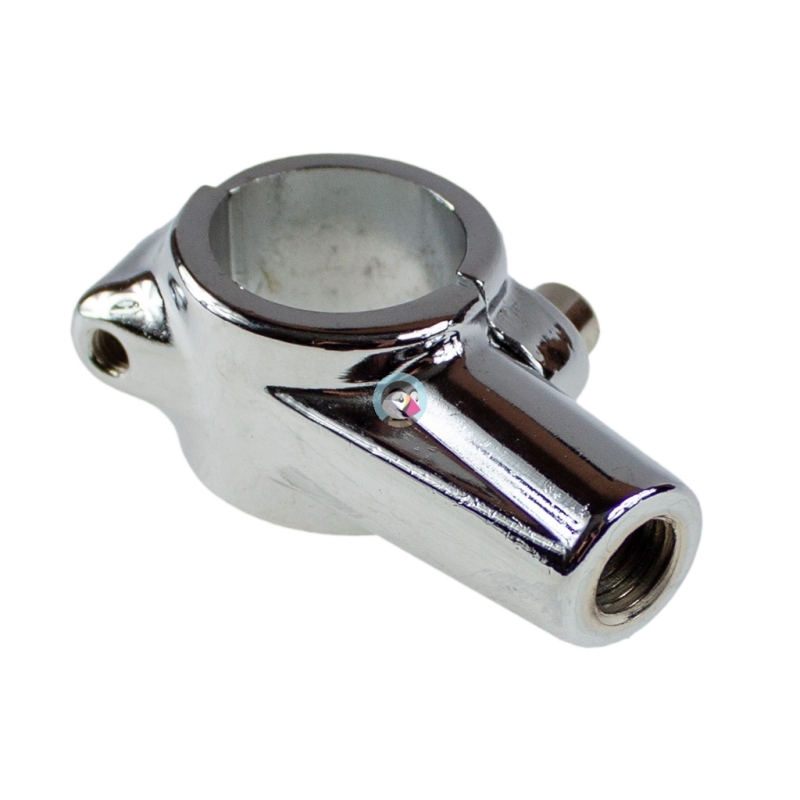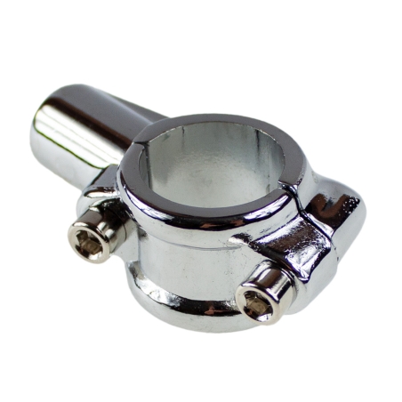Obejma chromowana, metalowa, na kierownicę o średnicy 22mm, do mocowania lusterka na gwint M10 Lewy.