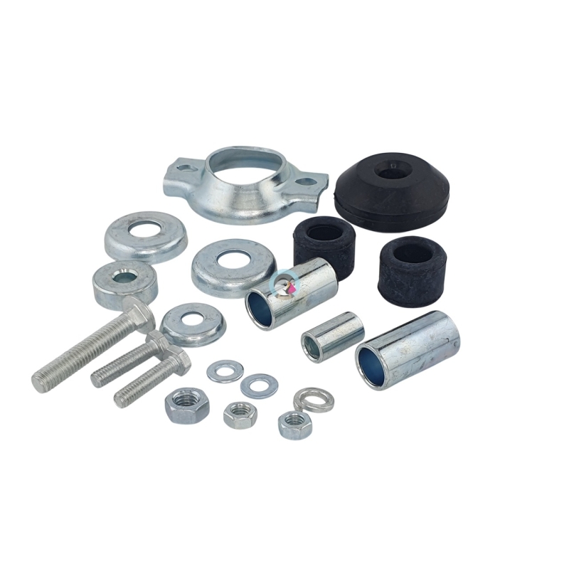 Kompletny zestaw naprawczy zawieszenia silnika, do motorowerów Simson S50 i S51. Zestaw zawiera wszystkie potrzebne elementy do zregenerowania zawieszenia silnika.