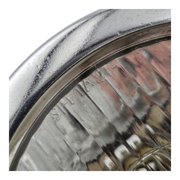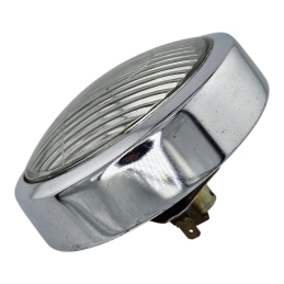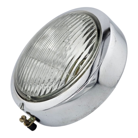 Nowy, oryginalny z okresu PRL, kompletny element optyczny z chromowaną ramką i metalową oprawką żarówki, do motorowerów Romet, Komar, Ogar200, Ogar 205, Kadet, Motorynka.