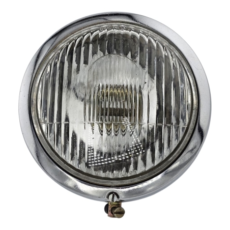 Element optyczny, do motocykli MZ ETZ, na żarówkę z oprawką typu R2 lub H4, z wypukłym szkłem i z oprawką na żarówkę pozycyjną.