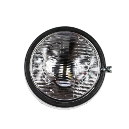 Kompletny element optyczny z plastikową ramką, do reflektora z zewnętrzną ramką metalową i przekręcaną stacyjką, do motorowerów Romet Komar, Ogar205, Ogar200, Kadet, Motorynka. Wysokiej jakości produkt polski.