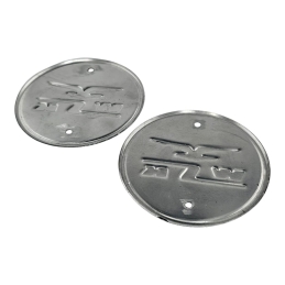 Para emblematów tłoczonych, przykręcanych do zbiornika na śruby ( śruby nie są w zestawie ) Kolor emblematów: czarny ; kolor wytłoczeń: srebrny szczotkowany. Jakość produktu: Druga kategoria.