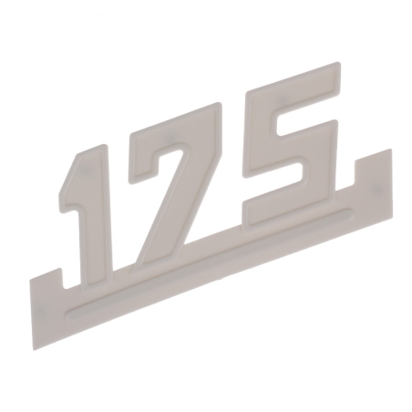 Emblemat plastikowy, biały na boczek, do motocykli WSK125. Napis 125.Znaczek boczka