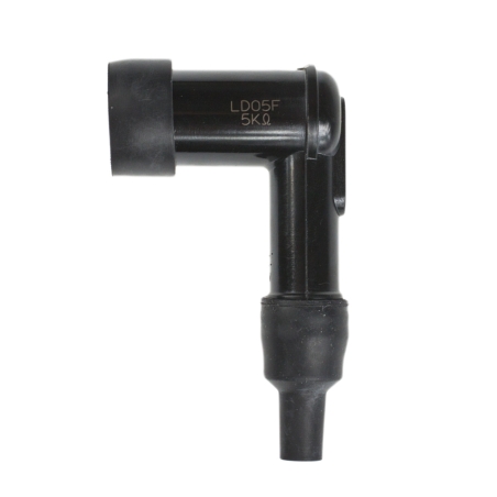 Fajka zapłonowa NGK 90 stopni. Model LD05F. Rezystor 5kOhm. Kolor czarny. Wejście od strony świecy: motocyklowe wąskie.