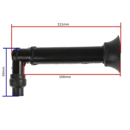 Fajka zapłonowa, wąskie wejście motocyklowe, gięta pod kątem 90 stopni. Materiał: plastik Kolor: czarnyProdukt tajwański.