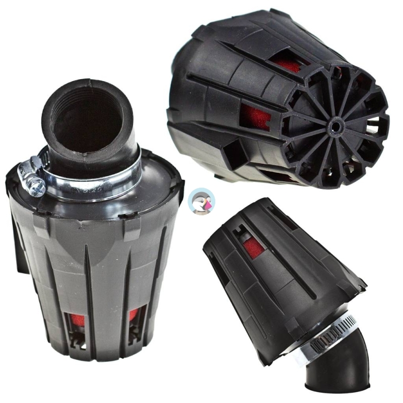 Filtr powietrza, stożkowy, z wkładem gąbkowym, zabudowany, z możliwością całkowitego rozłożenia do wyczyszczenia, do motocykli,motorowerów i skuterów. Średnica montażowa otworu do gaźnika: 35mm