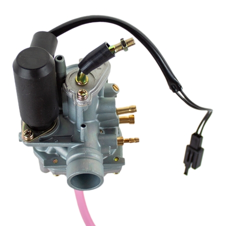 Wysokiej jakości gaźnik, do skuterów dwusuwowych 2T, produkcji chińskiej, azjatyckiej, oraz do skuterów Peugeot, dedykowany do skuterów o pojemności od 50cm do 70cm3. W zestawie elektrozawór ssania. Gaźnik jest nowy, kompletny, wyregulowany fabrycznie i gotowy do montażu. Nalezy jednak pamiętać, że każdy silnik ma większy lub mniejszy przebieg, podzespoły są zużyte bardziej lub mniej, może wymagać delikatnych regulacji.