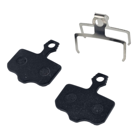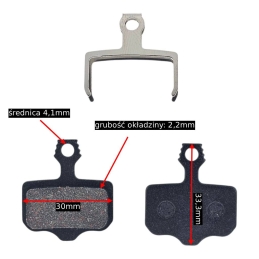 Komplet dwóch klocków ze sprężynką, do jednego zacisku hamulcowego do rowerów.