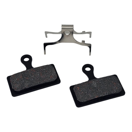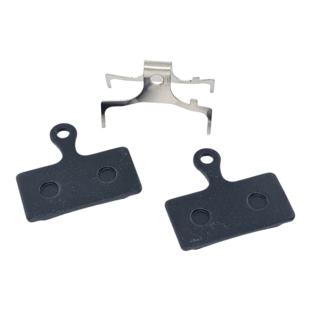Komplet dwóch klocków ze sprężynką, do jednego zacisku hamulcowego do rowerów.
