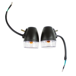 Komplet dwóch kierunkowskazów LED plastikowych w kolorze czarnym AM1334.Kierunkowskazy posiadają homologację.