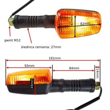 Para kierunkowskazów, do motocykli Yamaha TDR125 R 93-96, TZR125 R 93-97, TZR250 87-91, XJ600 N 95-01, XJ600 S Diversion 92-02, XJ900 S Diversion, FZR600 89-93, FZ750 87-92, FZR1000 87-95, FJ1200 86-95, XJR1200Miejsce montażu - prawa i lewa strona.