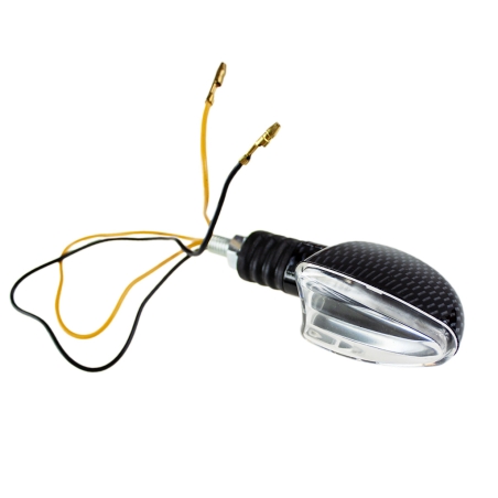 Kierunkowskaz Mini strzałka - szkło transparentne, kierunkowskaz carbon. Miejsce montażu: prawy przód, lewy tył Kierunkowskaz jest z żarówką 12V 23W. Kierunkowskaz posiada homologację.