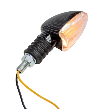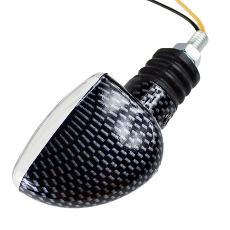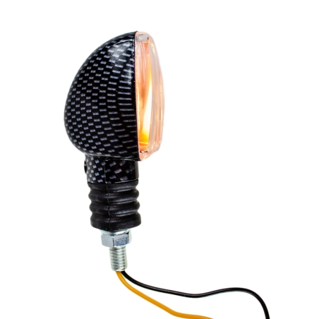 Kierunkowskaz Mini strzałka - szkło pomarańczowe, kierunkowskaz carbon.Miejsce montażu: lewy przód, prawy tyłKierunkowskaz jest z żarówką 12V 23W.Kierunkowskaz nie posiada homologacji.
