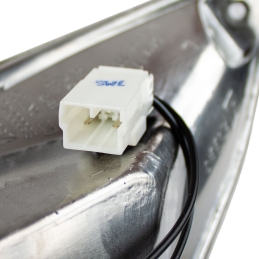 Kierunkowskaz chromowany, montowany w kierownicę stalową o średnicy zewnętrznej 22mml. Kierunkowskaz świeci z dwóch stron. Zamontowano żarówkę rurkową 12V.