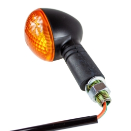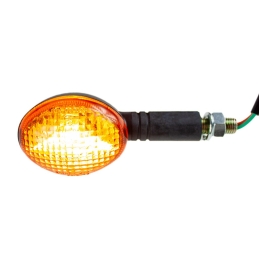 Kierunkowskaz czarny, owalny, homologowany E11, z pomarańczowym kloszem i żarówką 12V 10W.