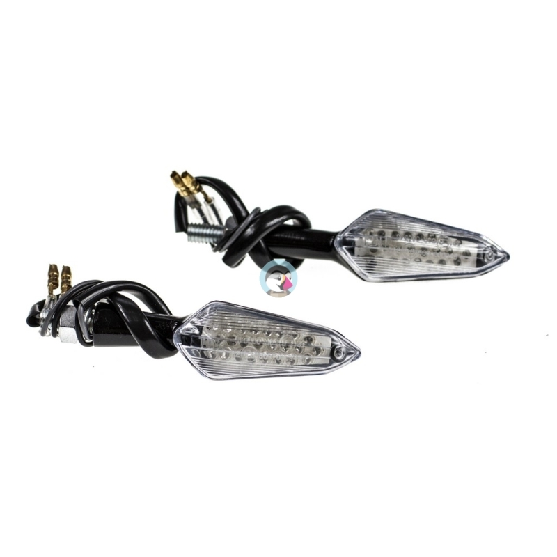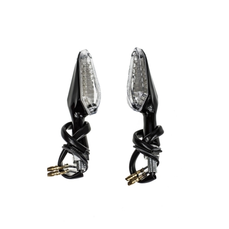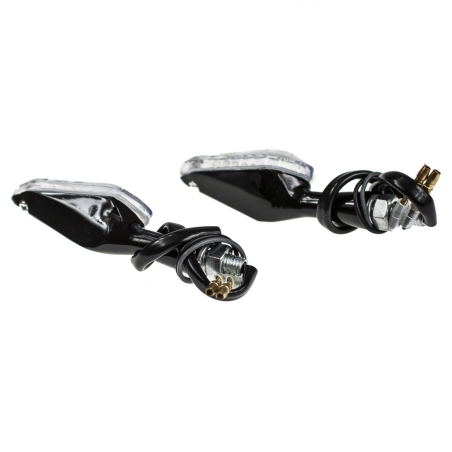 Komplet dwóch kierunkowskazów LED plastikowych w kolorze czarnym AM1326.Kierunkowskazy posiadają homologację.