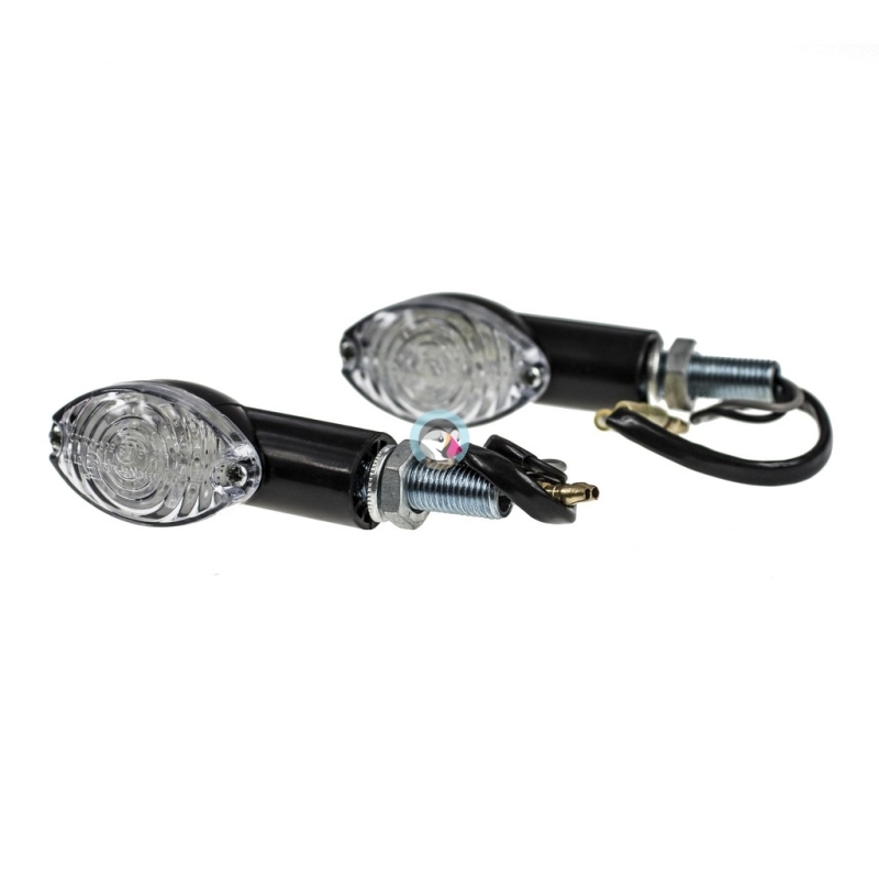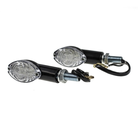 Kierunkowskazy Vicma, do skuterów, maxiskuteów, motocykli i motorowerów Aprilia RS50, RS125, RS250, Scarabeo 50, SR50 SR125, Rally 50, Classic 125, oraz Benelli Pepe 50 i Italjet Torpedo 50Komplet zawiera dwa kierunkowskazy na dwie stronyKolor czarny.