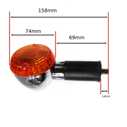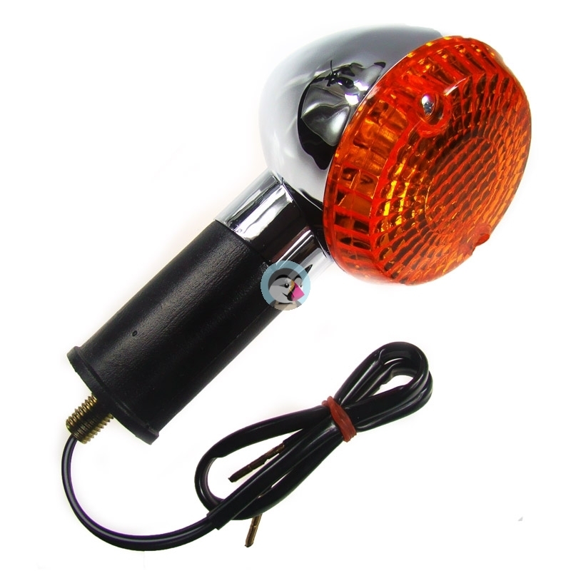 Kierunkowskaz chromowany, pomarańczowy klosz, do motocykli Suzuki GSF400 Bandit, ale może być stosowany, jako uniwersalny, ze względu na jego łatwość montażu, oraz zastosowaną w nim żarówkę 12V 10W.Kierunkowskaz nie ma homologacji.