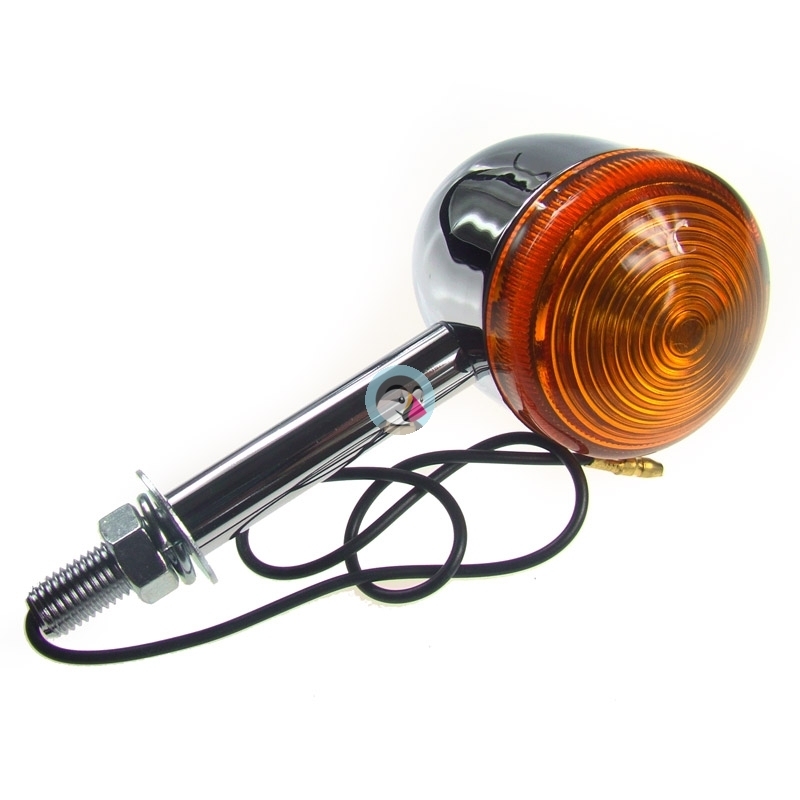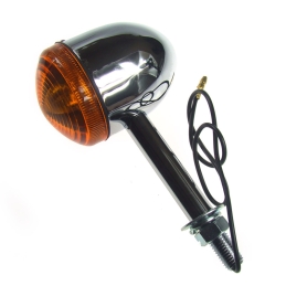 Kierunkowskaz chromowany. Model Bullet. Jeden przewód zasilający. Zamonotowana żarówka 12V. Miejsce montażu: PP PT LP LT.Długość całkowita kierunkowskazu: 95mm Długość ramienia: 22mm Średnica klosza kierunkowskazu: 49mm Długość gwintu: 26mm