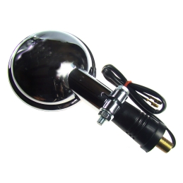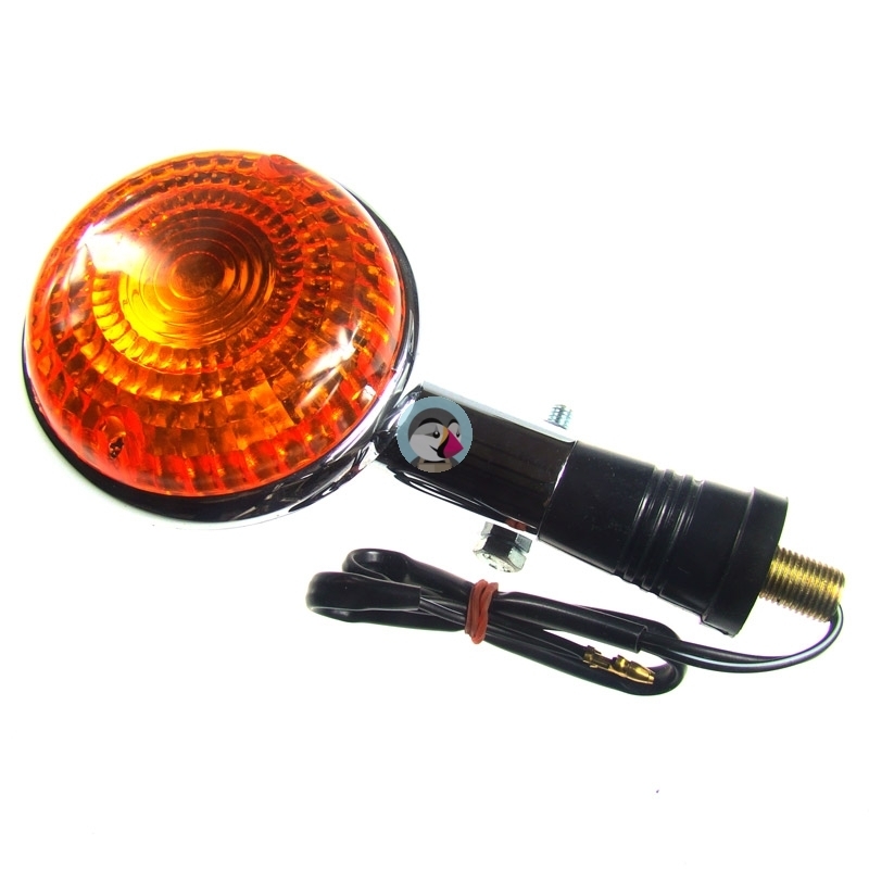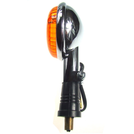 Kierunkowskaz chromowany, montowany w kierownicę stalową o średnicy zewnętrznej 1cal (tj. 25,4mm). Kierunkowskaz świeci z dwóch stron. Zamontowano żarówkę rurkową 12V.Uwagi: homologacja, metalowy, 25,4 mm