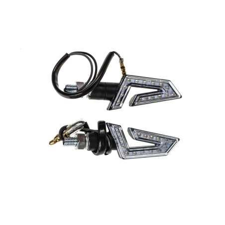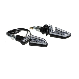 Para kierunkowskazów SHIN YO. Model Hatch - kształt strzałek. Materiał: plastik. Kolor czarny. Wysokiej jakości kierunkowskazy 12V, z homologacją. Miejsce montażu: przód lub tył.
