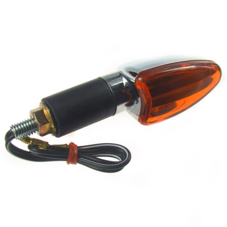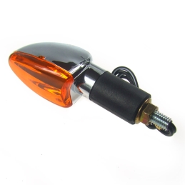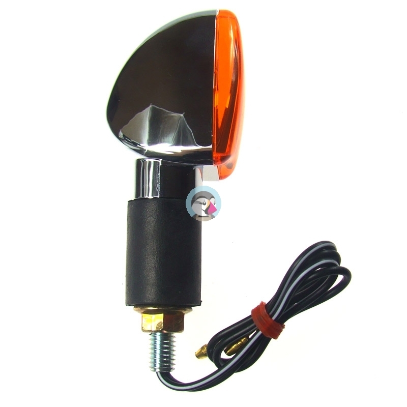 Kierunkowskaz chromowany, kształt Strzałka. Klosz pomarańczowy. Zamontowana żarówka 12V 23W. Miejsce montażu: LP, PT (lewy przód, prawy tył). Kierunkowskaz plastikowy, chromowany. Dobrej jakości produkt z Tajwanu.