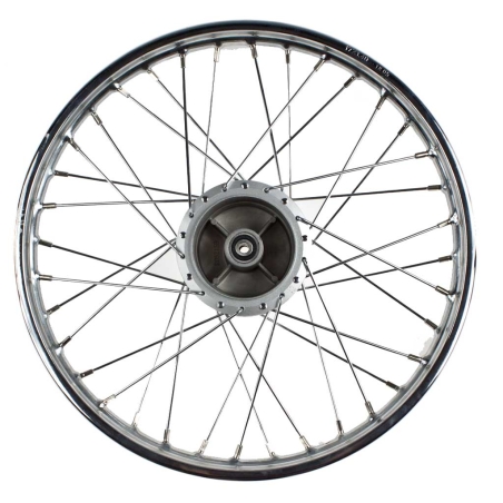 Koło przednie, do motorowerów Romet Ogar200 Ogar205. Stalowa obręcz i szprychy chromowane. W zestawie łożyska osi koła.