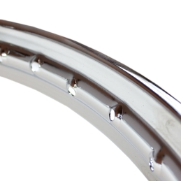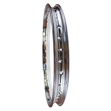 Obręcz koła 17 cali, szerokość 1,40 cala, do 36 sztuk szprych. Obręcz do motorowerów Romet Ogar200, Ogar2005. Materiał: stal chromowana. Produkt wysokiej jakości. Grawer na boku obręczy z rozmiarem.