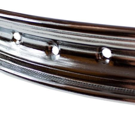 Wysokiej jakości zestaw obręczy chromowanych, stalowych, w rozmiarze 19 cali, szerokości 1,35", bez graweru bocznego z rozmiarem ze szprychami ocynkowanymi. Zestaw dedykowany do motorowerów Romet Komar Sztywniak, oraz Żak i Ryś.