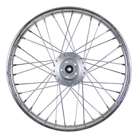 Komplet dwóch sztuk obręczy oraz dwóch kompletów szprych, do motocykli WSK125 WSK175. Obręcze na splocie podwójnym krzyżowym, tak jak w oryginale. Szprychy, 2 zestawy po 36 sztuk i długości 167mm, z gięciem 90 stopni. Wszystkie elementy chromowane.