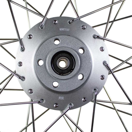 Koło przednie lub tylne , do motorowerów Simson S51 S50 S53 16caliWysokiej jakości produkt. Stalowa obręcz i szprychy chromowane. Piasta koła według oryginalnego wzoru. W zestawie łożysk osi koła.