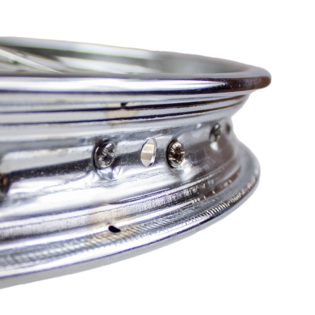 Wysokiej jakości obręcz chromowana, stalowa, o rozmiarze 18 cali, i szerokości 1,60", dedykowana do motocykli WSK125 B3, w których zastosowanao splot szprych jednokrzyżowy ( + )