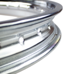 Obręcz koła 16cali. Szerokość wewnętrzna do opony: 1,4cala. 36 szprych,Materiał: stal, Kolor: chrom.Pasuje m.in. do motorowerów Romet Kadet