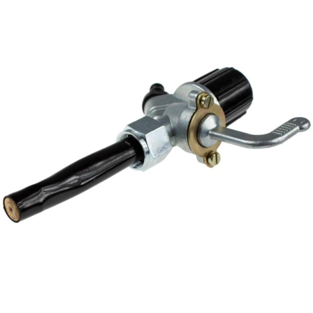 Kranik paliwa, ręczny, z dłuższą dźwignią i z odstojnikiem, przykręcany do zbiornika paliwa. Gwint: M16x1,00 Pasuje do motorowerów Simson SR50 Skuter Dobrej jakości zamiennik orgyinalnego produktu.