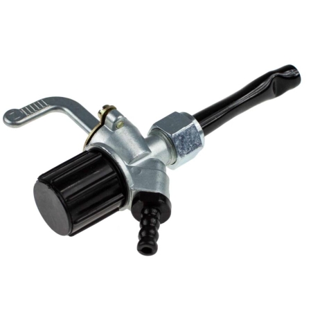 Wysokiej jakości zamienny z oryginalnym, kranik paliwa, ręczny, z odstojnikiem, przykręcany do zbiornika paliwa do motorowerów Simson SR50 Skuter, z długą dźwignią.