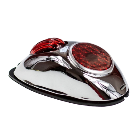 Lampa tylna kompletna, bez żarówek, do motocykli Junak, SHL, WFM.W lampie są dwa gniazda na żarówki rurkowe, jedno do żarówki postojowej, drugie, do żarówki światła STOP. Produkt polski.